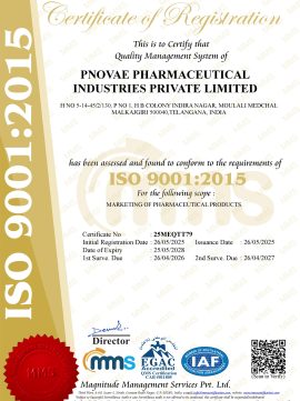 Verifies that our Quality Management System meets international standards for the Marketing of Pharmaceutical Products, reflects our unwavering dedication to maintaining high standards in our operations and delivering trusted pharmaceutical solutions.